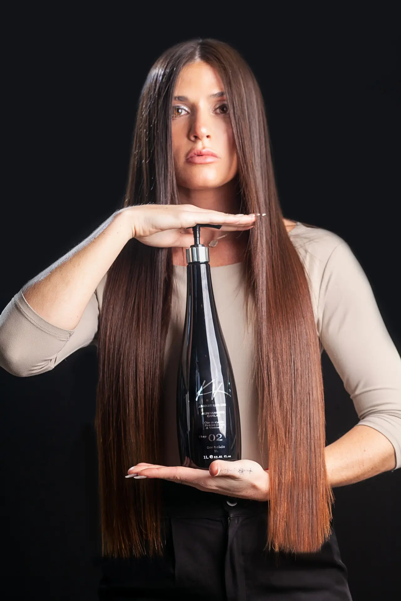 9. Aplicar el protector térmico Absolut Hair Liss KV en todo el cabello